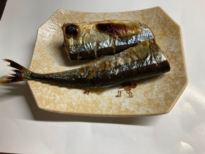 今スーパーでは少し太めの秋刀魚が沢山出ていますね。 220円で買ってきました。脂がのっていておいしかったです。