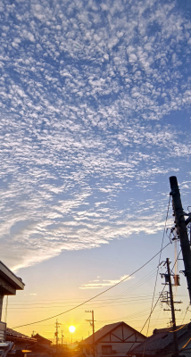 やはり秋ですね、朝陽にうろこ雲が広がっていました。