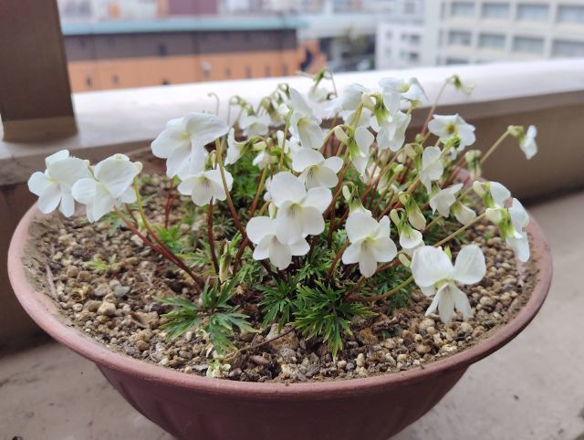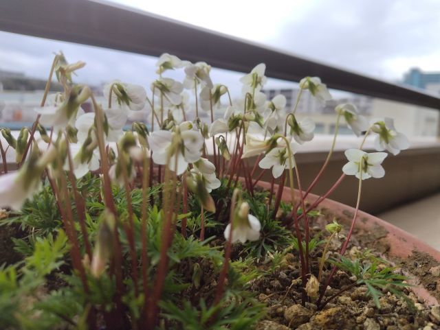 ベランダもヒゴスミレ 四季咲きラベンダー、ヒメツルソバやハナニラなど咲いて賑やかになって来たわ