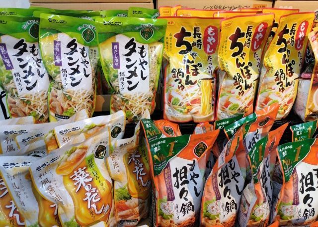 そちらの鍋のつゆもたくさん並んでいますね〜!