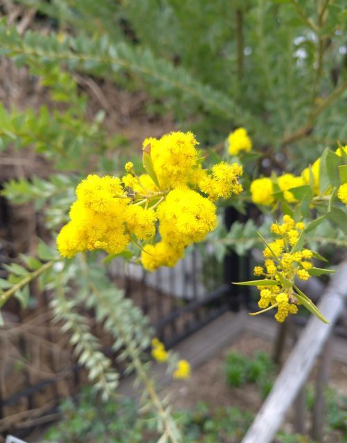 この花は検索ではミモザアカシアと出ますが現地の名札には銀葉アカシアとなってたわ