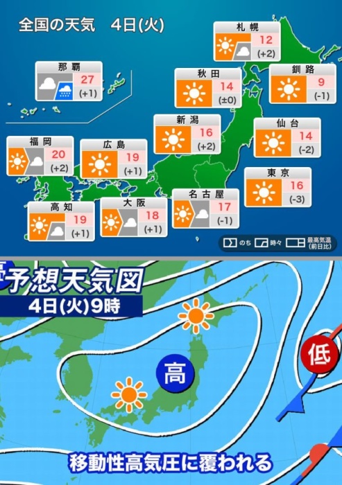 昨日3日(月)文化の日は一時的に西高東低・冬型の気圧配置となりました。