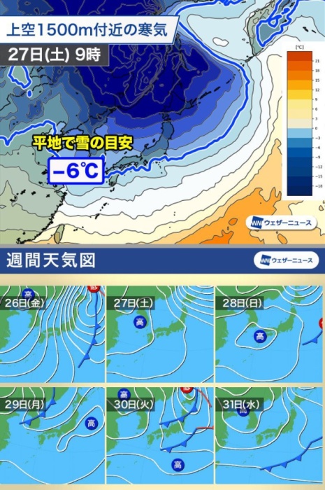 上空の強い寒気が南下して、北陸や山陰など日本海側の地域では荒れた天気に・・・