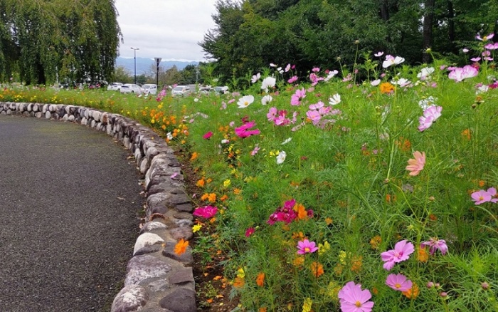 10/5‥安曇野市の公園で入り口だけコスモスがありました