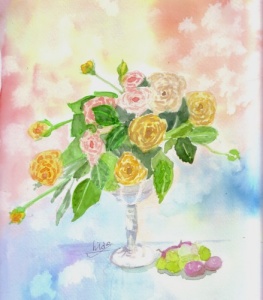 背景のぼかしはだんだん上手くなってきたようです。問題は花全体の構成と奥行きかな?