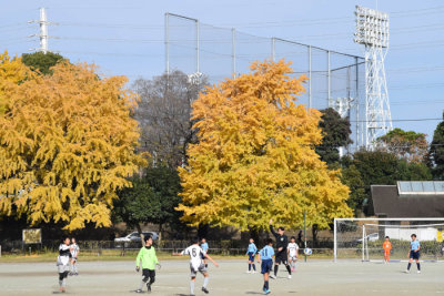 グラウンドではサッカーの試合をしてました。