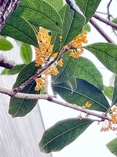近所や遊歩道のキンモクセイが満開でもう街中が甘い香り…空気が澄んで??❓るのでいつもよりいっそう香ります。