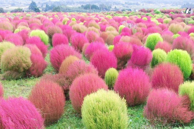 村の道の駅、”阿蘇望の里”のコキアが色づいたと聞いて、久しぶり(!)にカメラを持って出かけました。