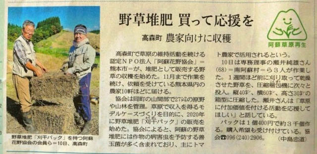 お知らせになりますが、われらが「阿蘇花野協会」が、地元新聞社や銀行などが主催する「肥後水とみどりの愛護賞」を受賞することになりました。