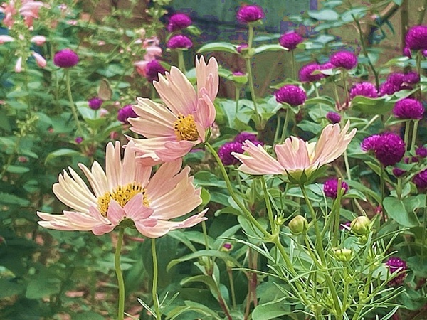 待ちきれなくってこんな変り色のコスモスを買い込みました。
