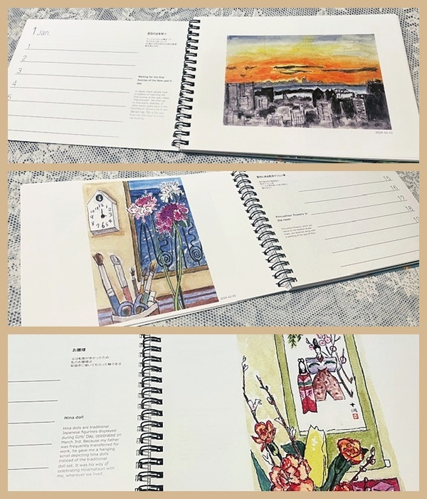 年末に素敵なプレゼントをいただきました。 友人の自作の2026年のウィークリーカレンダーです。 7日ごと、52枚のスケッチ付き…ズシリと重いですよ〜(*^^*)