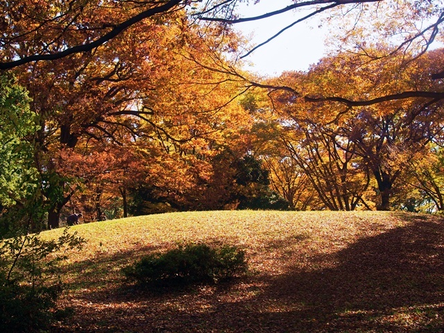 仕方がないのでこうなったら明治神宮へとÙターンして… ここはまだあまり紅葉も進んでなくって、大きな芝の広場では寝転んで日光浴をする人は一杯〜