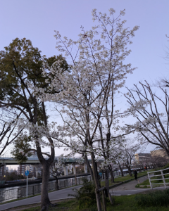 どこの林道?なんとなく怖そうなイメージ。楽しんでください。今度、桜満開の吉野山、4月前半10日位かなー、車やったら絶対行けんけど、行きませんか。昔、バイクで行ったことあって、その時は行けたけど、今はどうかわからんので何ともいえん。1か月くらいバイク乗ってないのでバッテリー大丈夫かなー?投稿ありがとう。(写真 桜ノ宮の川沿い、たまたま咲いていましたが、まだ桜は全然です。)