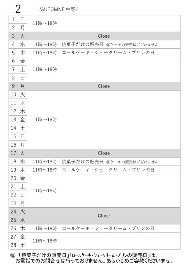1/27 (火) 秋津店 L’AUTOMNE 創業以来 初‼️