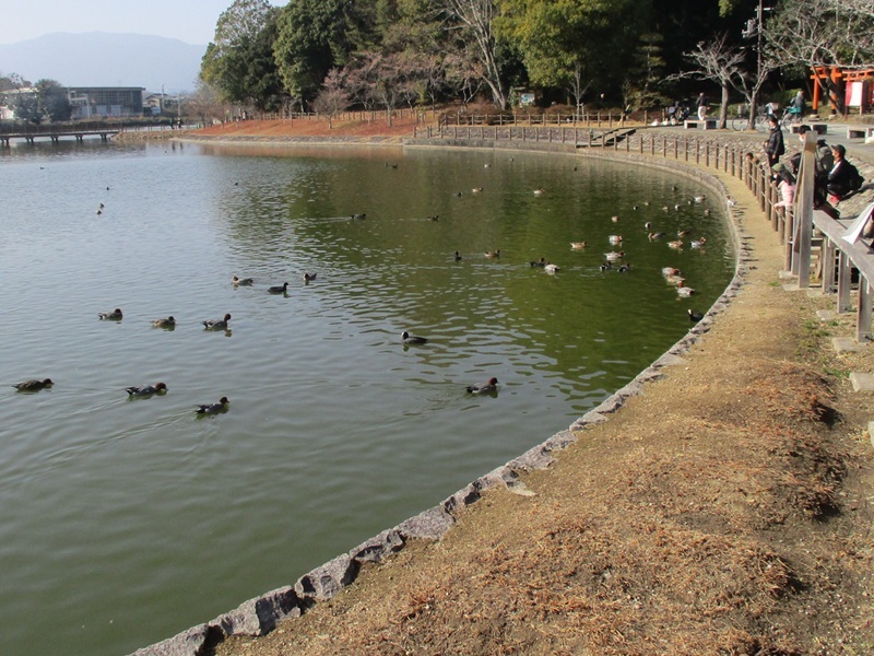橿原神宮にこんな大きな池にこんなにたくさんの鴨が居るのですね。
