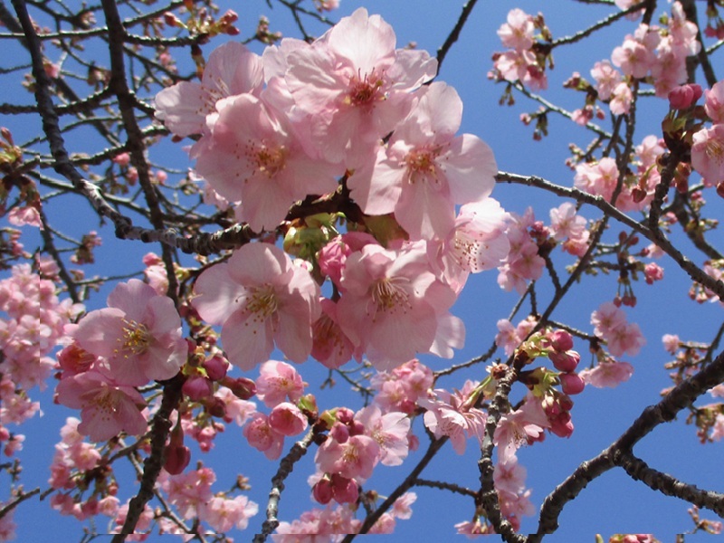 うわぁぁ〜〜見事な河津桜ですね。保存させて下さいね。