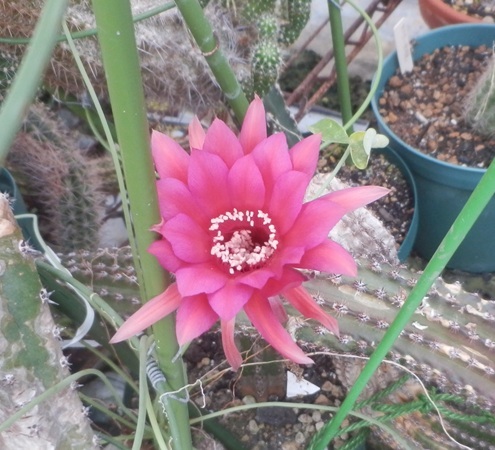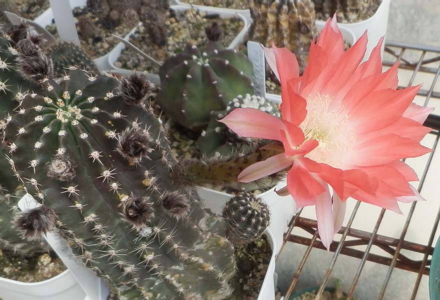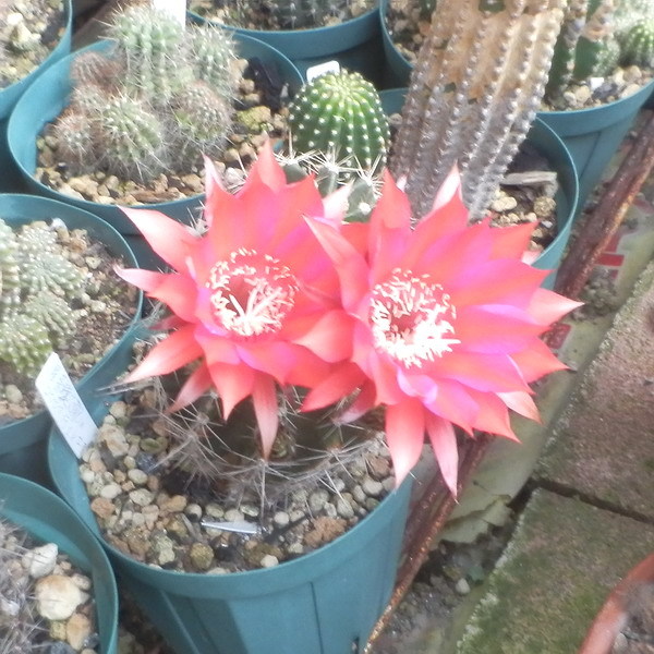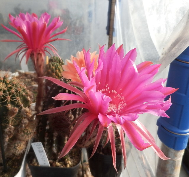 ロビビオイデス×エキノプシスspはmajorさん(札幌カクタスの前の会長さん)がソエレンシアの赤花種に紅鳳丸系の素晴らしい交配種を見てその花粉をもらって交配してできた交配種子の私の実生分です。
