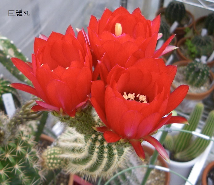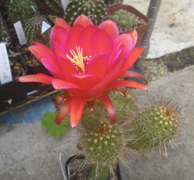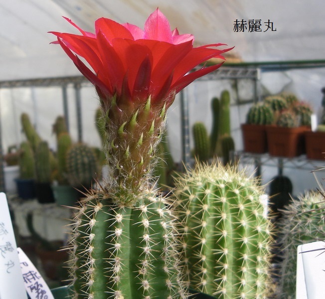 かくたすさんが挙げられた個体はソエレンシア系(湘南丸系)の長型長刺赤花種ですが、似たような交配種を伊藤先生がたくさん作られているのでラベル落ちすると同定がなかなか難しいですのね。