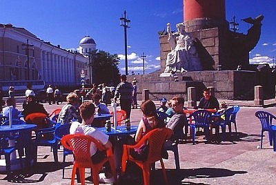 ネヴァ河沿いの空き地にはテーブルやイスが用意され、