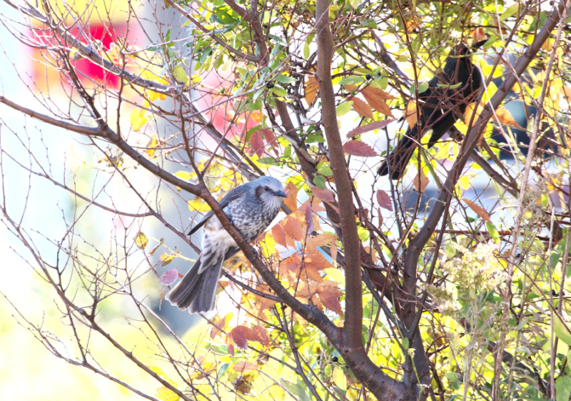 朝の気温も一桁台になってきましたが ヒヨドリ達は 元気にとびまわっています ただし 声だけはバカ高いですけどね