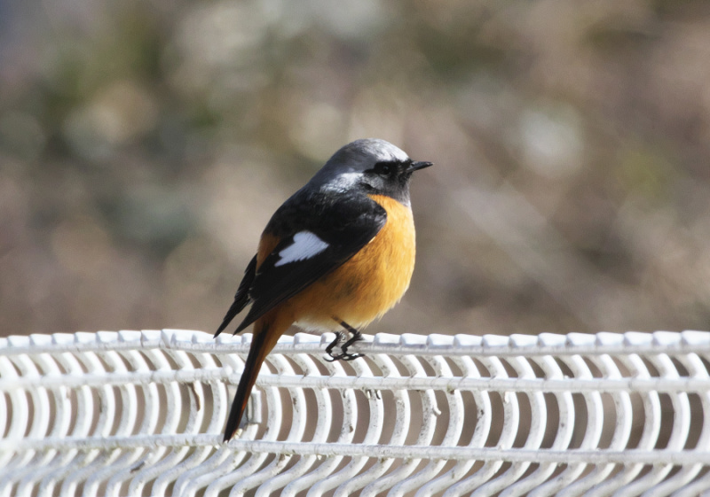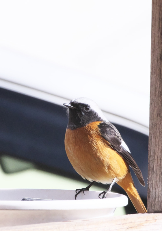 ジョウビタキが近くに留まってくれたほかに エサ台の 水を飲んでくれました