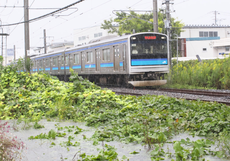 線路脇も 冠水 もう少し降られると 線路側から水が流れ込みます