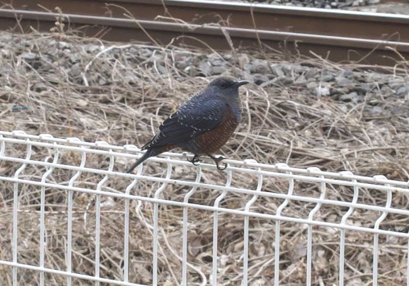 車両を撮っていたら 遊びに来た イソヒヨ君