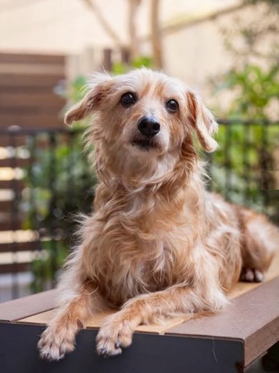 ■特徴 テリア系mix♀茶 推定8〜10歳 8.4キロ