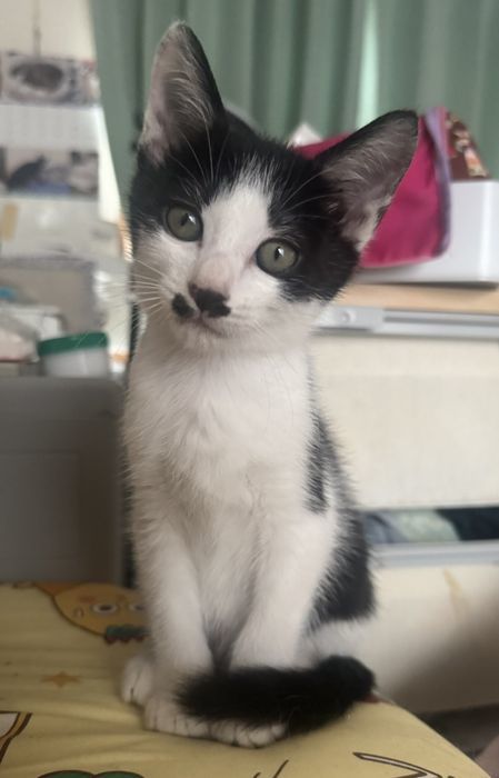 仮称 えい ♂ 黒白 長尾 生後2ヶ月(2025年8月15日ごろの産まれ)体重1kg