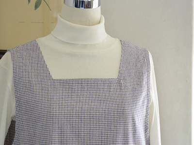 立体的なポケットと後姿がかわいいギンガムのエプロンと、