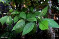 葉の大きさは、最大20cm(横幅8〜9cm)で、葉に細かい斑点(病気によるもの?)があり、輪生のように見えます。葉の葉脈は黒っぽく明瞭で、葉縁に鋸歯は無いようです。葉柄の近くに約6mmほどの艶のある黒い実が疎らに付いています。