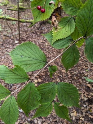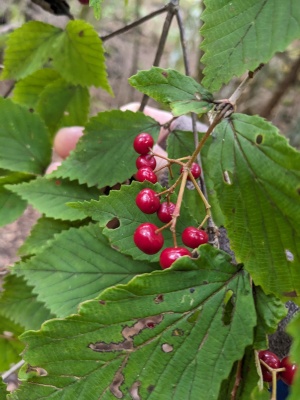 葉柄が短く、1枚目写真の葉柄基部にはことごとく針状の托葉が観えますね。コバノガマズミと思います。