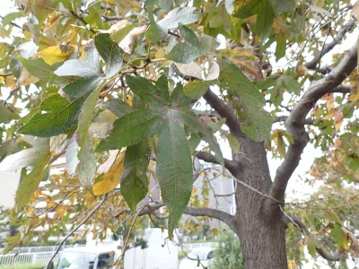 自然樹形ならば、枝が縦に伸び樹冠が尖っていればセイヨウハコヤナギ、枝が斜めに伸び樹冠が楕円形ならカロリナハコヤナギと見なせます。