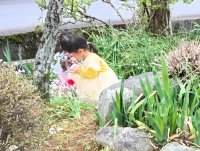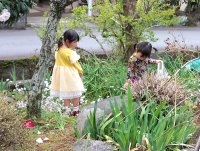 足元には花ニラ 撮ってと ちいちゃんが言うとしいちゃんも撮って どっちが綺麗?と質問です困