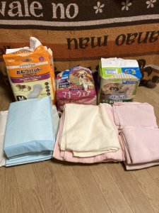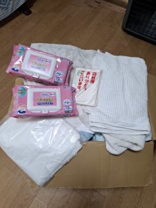 トイレシート・オムツパット・マナーウェア・タオル等を頂きました。