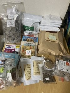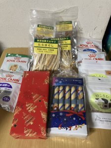 メッセージと共に、ドッグフード・おやつ・ペットシート・お菓子を頂きました。