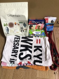 ドッグフード、タオル、リード、駆除剤等をいただきました。