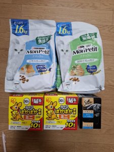 猫用ドライフード、ウェットフード、カイロを頂きました。