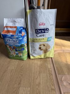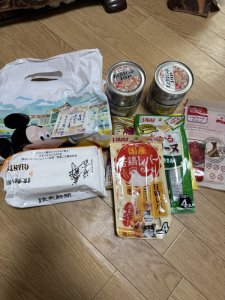 犬用フード、ウェットティッシュ、お菓子を頂きました。