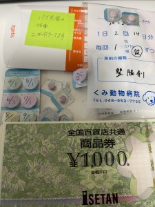千葉県佐倉市M様(元イオナ現在音之進くんの里親様)よりお手紙と共に犬フード、ハーネス、おしっこシートなどを頂きました。