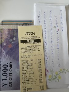 ご住所、お名前の記載がなかった為、この場にてお礼状に代えさせて頂きます。