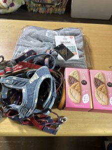 お菓子、犬服、首輪、ハーネス、リードを頂きました。