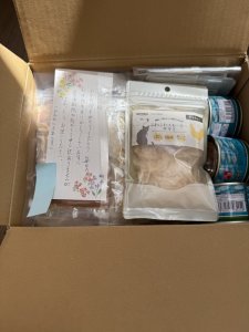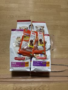 犬用フード、シャンプータオル、予防薬などをいただきました。