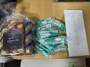 お菓子は休憩時間にボランティアさんたちと頂きます。