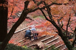 茅葺屋根の吹き替え中でした。