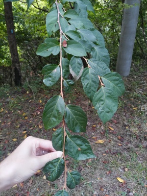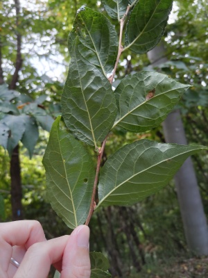葉は互生葉序で低く鈍い鋸歯があります。葉は菱形に近い形です。