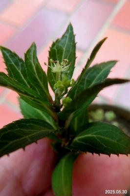 追伸:この植物は突然に鉢の中から出て来たものです。周囲にはアジサイがあります。