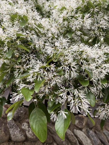 よく似たアメリカヒトツバタゴがありますが、葉が大きく(葉身長15cm前後)花の裂片がもっと細長いように思います。