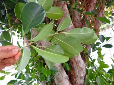 葉の表面と裏面です、小さくて疎らな鋸歯が見られます。葉の大きさは3〜4cmのもので、画用紙ぐらいの硬さです。茎は黒っぽいものです。どうぞ宜しくお願いいたします、