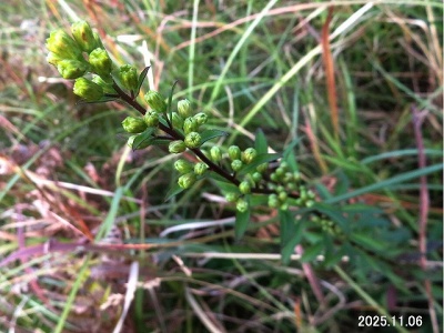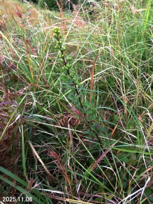 或る島の草原に生えていたもので、蕾らしいものが縦に並んでついたものです。高さ60cmほどのほっそりしたものです。花らしいものが咲きかけていますが、黄色く見えます。何という植物でしょうか、お教えください。
